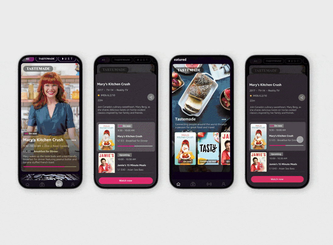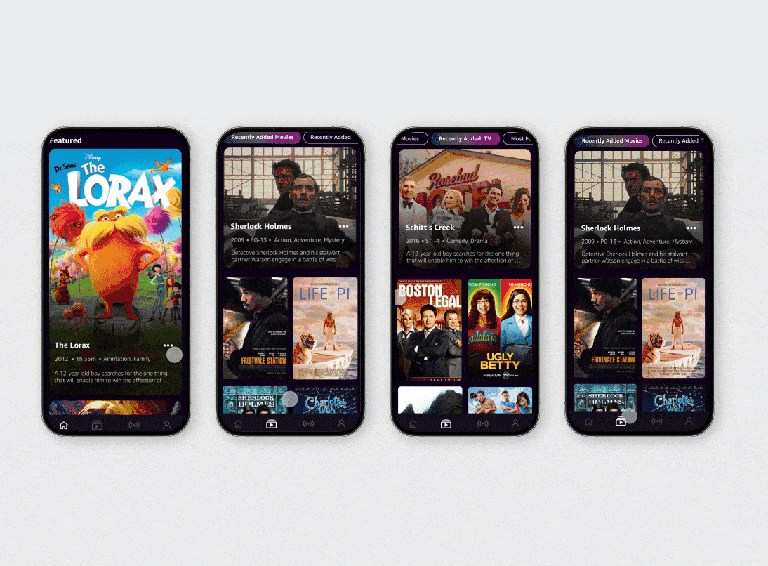 Streaming was everywhere, but mobile streaming was broken. Only 12% of customers said they could easily find content on streaming platforms, and the apps that existed all looked and felt the same. Freevee had something competitors didn't: free content, live streaming, and the trust equity of IMDb's ratings and reviews. I led the UX and UI design of the Freevee standalone mobile and tablet app from concept through launch, building a discovery and playback experience designed specifically for the way people watch on their phones.